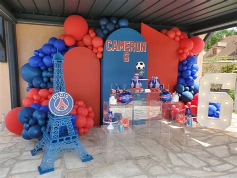La décoration est un élément essentiel pour créer une ambiance festive et immersive. Pour un anniversaire sur le thème du PSG, plusieurs éléments sont indispensables :