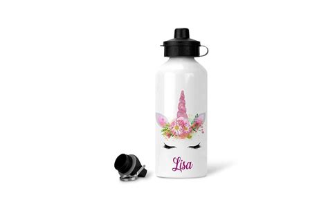 Recommandée pour les plus jeunes, cette gourde peut être personnalisée d’un prénom en dessous d’une image de licorne. Plusieurs types de calligraphies et deux lignes de texte sont disponibles. Deux types de bouchon facilitent le transport et limitent les risques de fuite. Disponible en 3 contenances (300 ml, 500 ml et 600 ml), cette gourde personnalisée convient à une utilisation en extérieur ou à l’école.