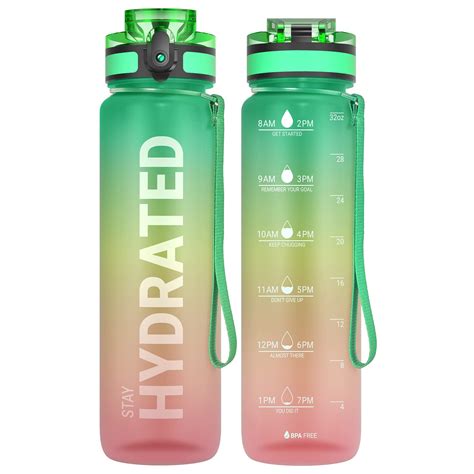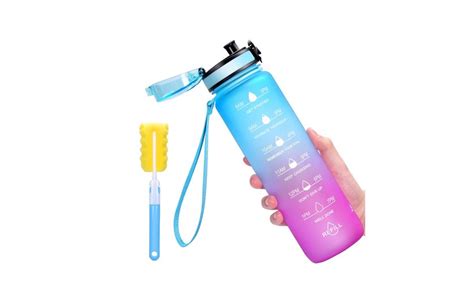 Cette gourde se transporte facilement grâce à une sangle incluse. Robuste, elle dispose d’une contenance confortable (950 ml). Le bouchon une main favorise l’utilisation pendant le sport. Une pièce incluse à l’intérieur prend la forme d’une petite passoire et permet d’infuser des morceaux de fruits pour parfumer l’eau. Plusieurs graduations indiquent la quantité d’eau bue avec précision. Dommage pour la présence des instructions de motivation, une bonne idée, mais une écriture en anglais.