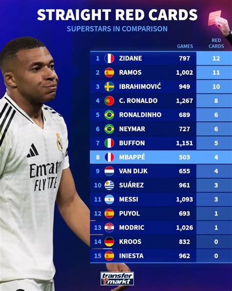 Voici un aperçu des joueurs ayant accumulé le plus grand nombre de cartons rouges au cours de leur carrière :