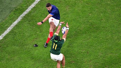 Lors du quart de finale de la Coupe du Monde de Rugby 2023 entre la France et l'Afrique du Sud, une action de Cheslin Kolbe a suscité une vive polémique. Kolbe a contré une transformation de Thomas Ramos, et les images ont suggéré qu'il pourrait être parti avant que Ramos n'entame sa course d'élan.