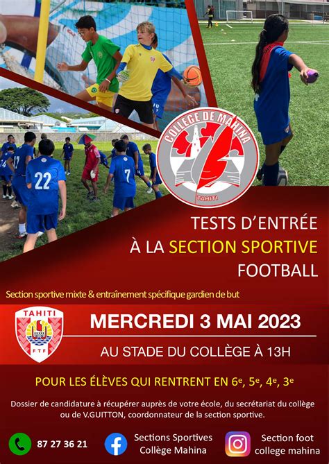Le collège est fier d'annoncer l'ouverture d'une section sportive scolaire football pour les élèves de la 6ème à la 3ème. Cette initiative offre aux jeunes footballeurs la possibilité de concilier leur passion pour le football avec une éducation de qualité. Découvrez les conditions d'admission, les critères de sélection et les avantages de cette section sportive.