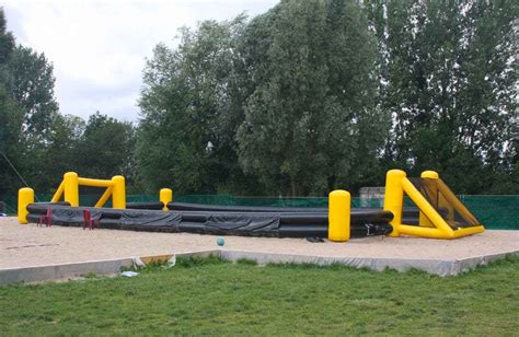 - Une aire de jeu rectangulaire délimitée par quatre lignes qui mesure de 35 à 37m en longueur et de 26 à 28m en largeur. Pour l’entraînement, les chaussons en néoprène permettent de pratiquer quelles que soient les conditions météo.