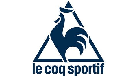 - 1948 - Premier logo officiel : Le coq apparaît dans un écusson triangulaire, accompagné du nom « Le Coq Sportif ». Le dessin est réaliste, détaillé, avec un coq aux plumes bien définies. Le trait devient plus épuré, plus graphique. C’est durant cette période que la marque habille les grands clubs de football français et les cyclistes du Tour de France, ce qui impose un logo lisible à distance.