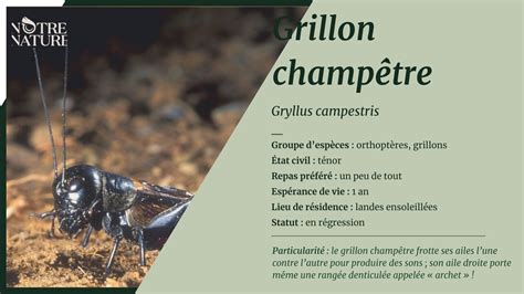 Le grillon champêtre est l'une des espèces les plus courantes en France, bien qu'il existe environ une vingtaine d'espèces différentes dans le pays. En Vaucluse, c’est particulièrement ce grillon que l’on entend, à partir du mois d’avril jusqu'à juillet, émettant son cri strident bien connu. Ce cri, appelé stridulation, est produit uniquement par les mâles adultes, qui frottent leurs ailes transformées l'une contre l'autre. Malheureusement, ces ailes ne lui servent pas à voler car elles sont trop épaisses, mais elles produisent un son puissant pouvant atteindre jusqu'à 100 décibels.