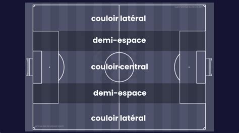 Le terrain est découpé en cinq « couloirs » pour plus de clarté dans l'occupation de l'espace. En France, Julien Stéphan ou Olivier Dall'Oglio, entre autres, emploient régulièrement le terme « demi-espace ».