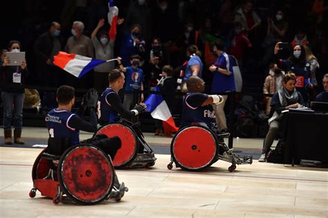 Le rugby fauteuil est un sport d’équipe mixte. 2 équipes de 4 joueurs s’affrontent pendant 4 périodes de 8 minutes. L’équipe ayant marqué le plus de buts remporte le match.