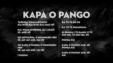 Le 27 août 2005, alors que la Nouvelle-Zélande s'apprête à défier l'Afrique du Sud, à Dunedin, la voix du capitaine Tana Umaga transperce la froide nuit de Dunedin. Il lance, à la surprise générale, le premier "Kapa O Pango" de l'histoire. Un haka composé à la demande des joueurs néo-zélandais, suite à l'affront des supporters des Springboks, qui ont osé ne pas respecter le "Ka mate" lors d'un précédent test-match, en le couvrant de cris et de huées.