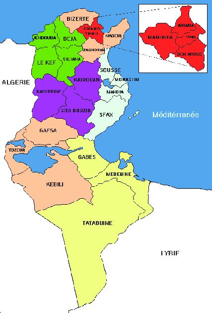 Carte des régions de la Tunisie