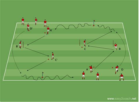 - Le joueur conduit le ballon sur 10 mètres, puis effectue une passe précise à un partenaire en mouvement.