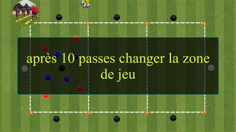 Les attaquants cherchent à se faire des passes d’une zone à l’autre et les défenseurs essaient d’intercepter le ballon. Notez que les attaquants doivent se faire des passes dans leur zone avant de transmettre le ballon vers l’autre zone.