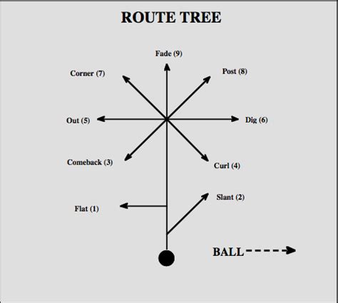 Un tracé est donc une trajectoire de course prédéfinie que doit effectuer le receveur pour se démarquer et ainsi pouvoir réceptionner la balle que lance le quarterback. Il existe différents tracés de base utilisés par toutes les équipes. Ces tracés peuvent être consignés sur un schéma que l’on appelle « l’arbre des tracés » ou « tree route » en anglais. Chaque tracé porte un nom et un numéro. Pour plus de simplicité, on attribue souvent un numéro pair aux tracés qui se courent vers l’intérieur du terrain et un numéro impair aux tracés qui finissent vers la ligne de touche.