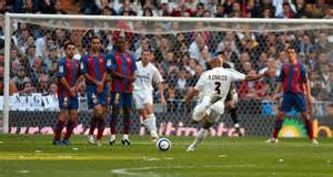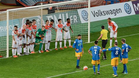 Un joueur exécutant un coup franc.