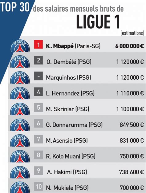 Salaires des joueurs du PSG et de Ligue 1