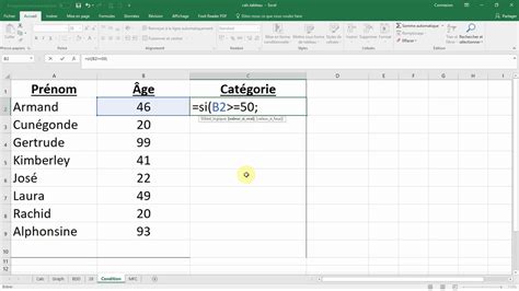 Syntaxe de la fonction SI sur Excel
