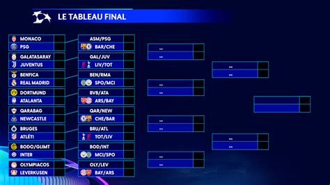 Ce vendredi 27 février (12h), un tirage au sort va déterminer les affiches des huitièmes de finale. Chaque qualifié à l'issue des barrages a deux adversaires potentiels en huitième de finale, à déterminer parmi les têtes de série (les clubs dans le top 8 de la phase de la ligue). À titre d'exemple, le PSG défiera le FC Barcelone ou Chelsea.