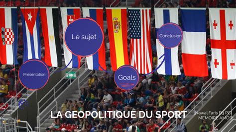 | Instrument de puissance | Le sport comme moyen pour les États de projeter leur influence et leur image à l'international. | Organisation de grands événements sportifs (Coupe du Monde, JO), succès des équipes nationales. |