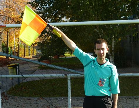 - Hors jeu : L'arbitre assistant signale les hors jeux en levant son drapeau à la verticale, puis il indique l’endroit où se trouve le joueur sanctionné :