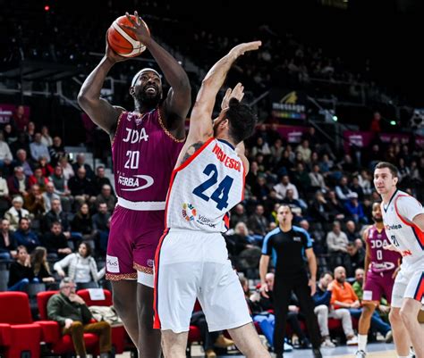 Les statistiques montrent pourtant la même réussite longue distance chez les deux équipes (38,5 %), mais celle des Kosovars est arrivée au bon moment, en deuxième période, avec au total 57 points inscrits après la mi-temps. La JDA paye également son manque d'impact défensif et ses 17 ballons perdus tout au long de la rencontre.