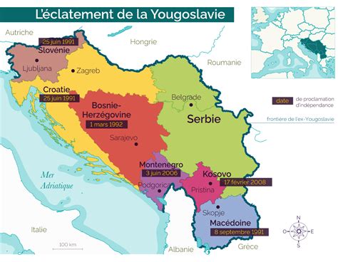 Carte des guerres de Yougoslavie.