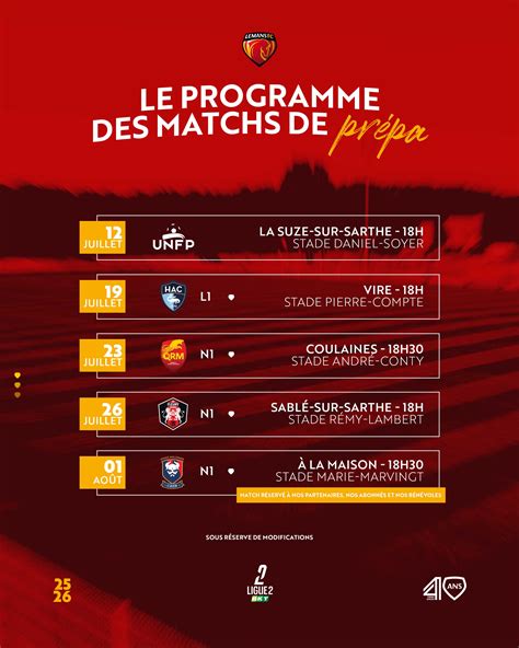 - Clubs de Football Sarthois : Les clubs de football sarthois seront prioritaires pour réserver des places cette semaine, aux tarifs grand public et dans la limite de 20 places au maximum par club. Un bon de commande a été envoyé et devra être retourné avant vendredi.