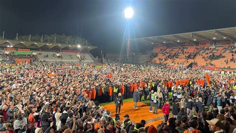 Le FC Lorient a validé sa montée en Ligue 1 grâce à sa victoire écrasante (4-0) contre Caen, et la défaite (2-1) de Metz à Pau. Ce samedi 26 avril, lors de la 32e journée de Ligue 2, les Merlus ont validé leur montée en Ligue 1 grâce à leur victoire écrasante (4-0) contre Caen, et la défaite (2-1) de Metz à Pau. Une soirée mémorable pour les supporters lorientais qui se sont empressés d’envahir la pelouse du Moustoir.