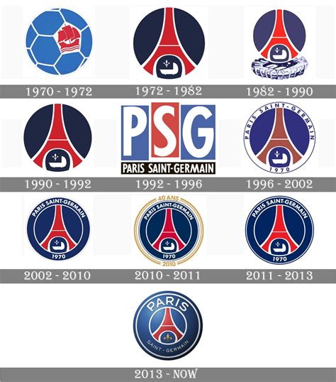 - Après la scission avec le Paris FC en juin 1972, le PSG, rétrogradé en D3, doit se réinventer et se reconstruire. Cela passe par un logo redessiné qui deviendra la base de ceux que nous connaissons désormais depuis 20 ans. Un écusson rond bleu avec une tour eiffel rouge et liseret blanc. Entre les pieds de la tour on retrouve un berceau, celui de Louis XIV né à Saint-Germain-en-Laye et une fleur de lys, elle aussi en référence à la ville.
