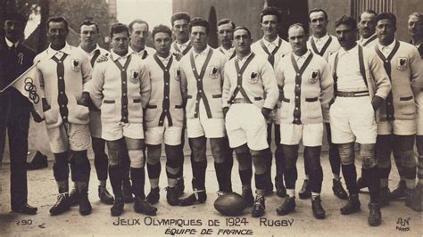 L'année 1924 fut une année spéciale pour la France puisque les huitièmes Jeux Olympiques de l'ère moderne s'organisent à Paris. L’équipe française de rugby participe au championnat avec ce polo bleu qui combine un beau bouclier du Coq de grande taille brodé sur la poitrine avec le style polo des années 20.