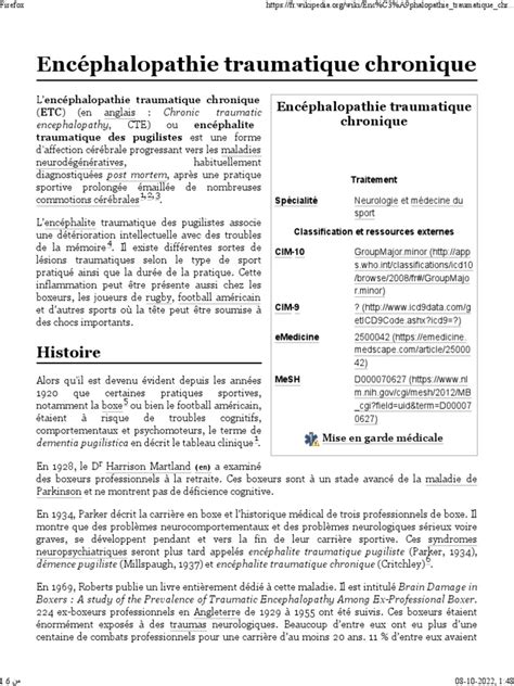 L'encéphalopathie traumatique chronique (ETC) est une maladie neurodégénérative qui suscite de plus en plus d'inquiétudes, notamment chez les sportifs pratiquant des disciplines à risque de traumatismes crâniens répétés. Cette affection, longtemps méconnue, est aujourd'hui au cœur de nombreuses recherches et controverses.