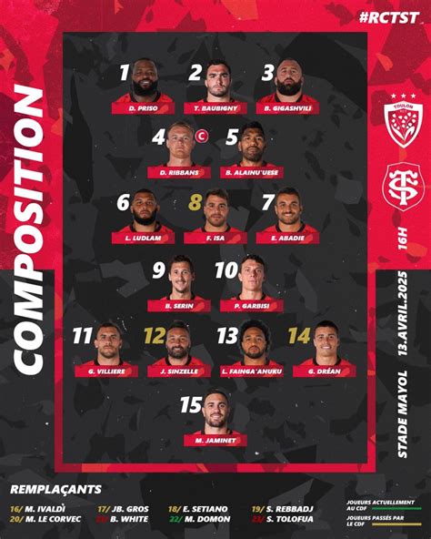 Ce week-end, les deux formations devaient composer avec plusieurs absences liées aux sélections internationales. Côté rochelais, cinq joueurs étaient retenus : le Géorgien Davit Niniashvili et les internationaux français Oscar Jégou, Paul Boudehent, Grégory Alldritt et Nolan Le Garrec. Toulon était lui aussi amputé de cadres importants, avec les absences de Jean-Baptiste Gros (France), Ben White (Ecosse), Beka Gigashvili (Géorgie), Setariki Tuicuvu (Fidji), Paolo Garbisi et Juan Ignacio Brex (Italie).
