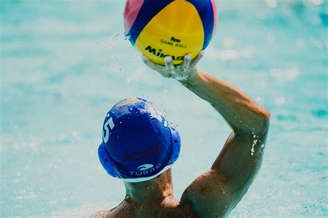 Un joueur de water-polo se prépare à lancer le ballon.