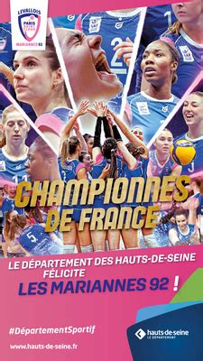 Issu de la fusion entre Levallois et le stade Français - Paris Saint-Cloud, le dernier né des clubs des Hauts-de-Seine, les Mariannes 92, a réalisé le premier exploit de sa jeune histoire fin avril. Après avoir renverser les Neptunes de Nantes pour le match aller, qu’elles jouaient à domicile, les volleyeuses Altoséquanaises se sont également imposées de la plus belle des manières au match retour (19-25, 26-24, 25-17, 26-24) sur le parquet nantais, une victoire qui leur permet d'accéder au sacre national et qui rend fier le Département des Hauts-de-Seine engagé dans une politique de soutien au sport de haut niveau.