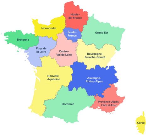 Carte des régions de France.