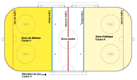 Les différentes zones de la patinoire de hockey sur glace.