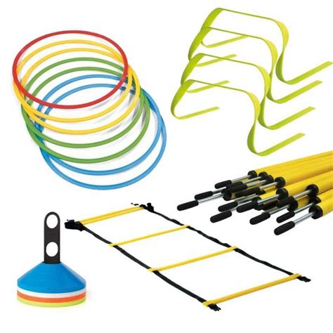Dans le cadre de votre préparation physique spécifique pour le football, il est aussi incontournable de se doter de plots, de cerceaux, de piquets et de haies d'agilité. Les bandes élastiques, médecine ball et les step sont aussi très utile pour l'amélioration et ou le maintien de la forme physique.