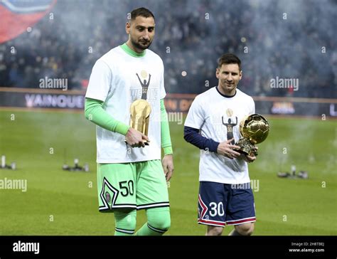Lionel Messi réconforté par Gianluigi Donnarumma après la victoire du PSG. AFP/Pablo Porciuncula