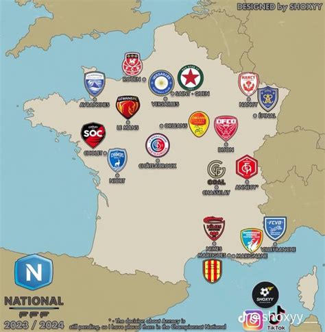 Carte de France des clubs de National 1.