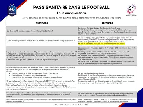 Le Pass sanitaire est obligatoire pour la pratique des seniors et les encadrants adultes. Il a été mis en place le 30 septembre pour les jeunes joueurs et joueuses de 12-17 ans, les moins de 12 ans étant exemptés.