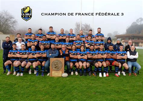 L'équipe du CA Sarlat célébrant sa victoire en Fédérale 3 en 2023.