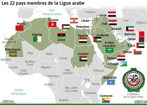 Carte des pays membres de la Ligue Arabe