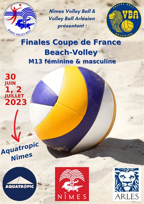 La COUPE DE FRANCE DE BEACH VOLLEY regroupe, à l’occasion d’une finale nationale, les 12 meilleurs clubs issus de tournois de qualification, pour les catégories d’âges SENIOR, M18, M15 et M13. La formule sportive de la compétition repose sur des oppositions directes entre club, chaque club étant composé d’un collectif de 2 équipes de 2 joueurs du même genre et habilités à jouer dans la même catégorie d’âge.