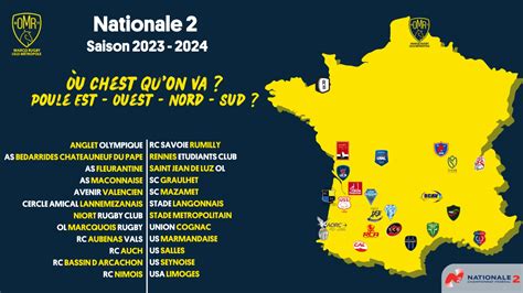 Du Pays Basque avec l’Anglet Olympique et le Saint Jean de Luz Olympique, jusqu’à l’Île-de-France avec le Rugby Club Orléans et l’Union Drancy Saint-Denis Rugby 93, en passant par le Sud-Ouest avec l’US Tyrosse et le Stade Langonnais, la Nationale 2 offre un panorama géographique remarquable du rugby amateur français.