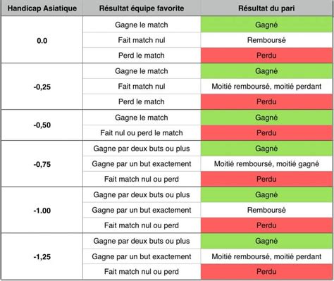- Réduction du risque de perte totale: En optant pour un handicap asiatique, vous pouvez limiter vos pertes en cas de match nul.
