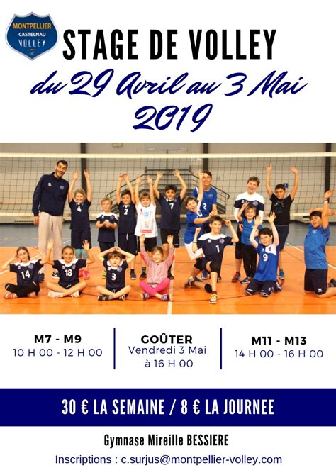 - Stage de volley pendant les vacances d’avril. Ce stage est ouvert au non adhérent.